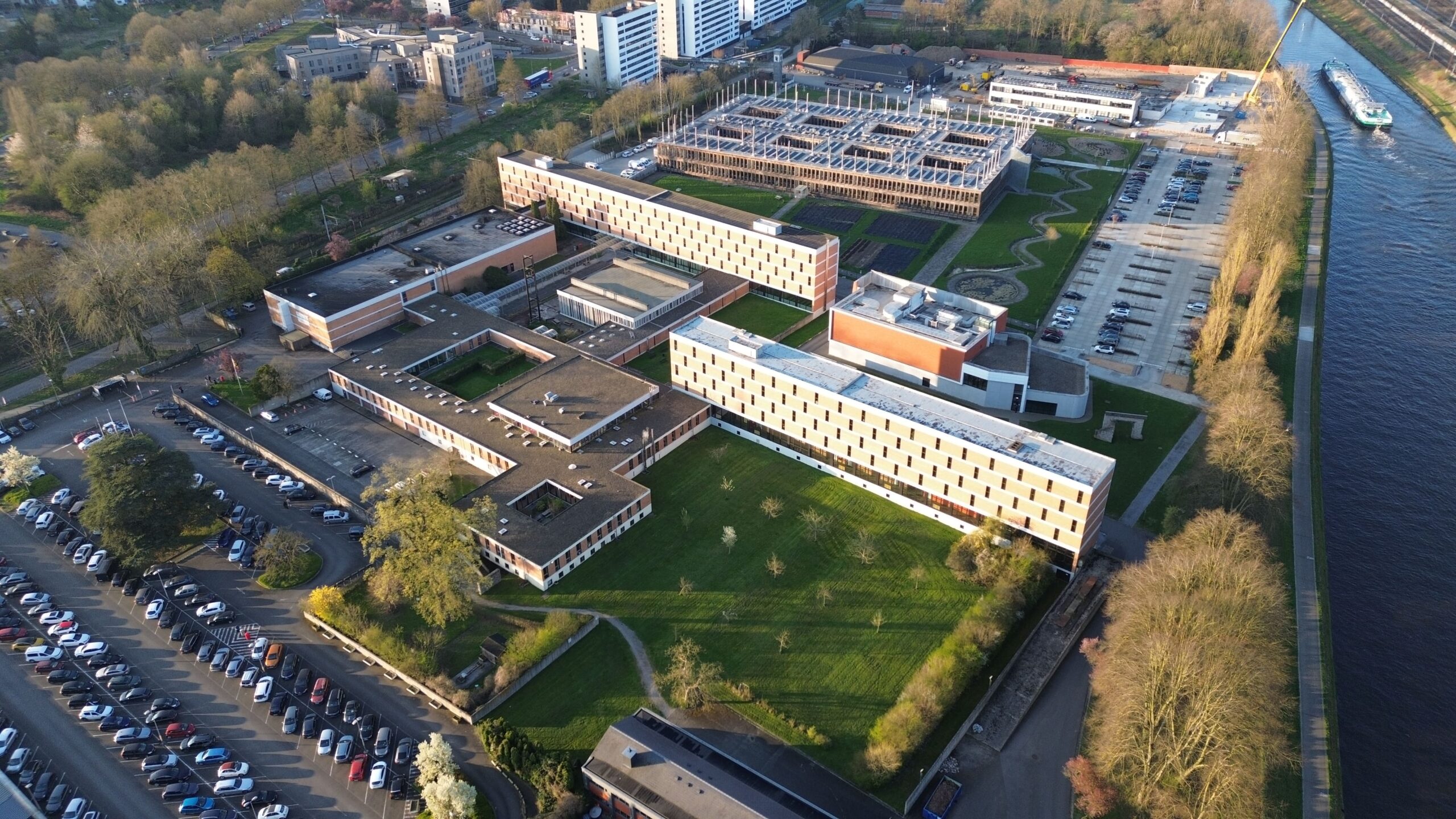 Les bâtiments modernes regroupent plusieurs établissements et disposent de divers services : un vaste parking, une bibliothèque, un restaurant, un accès gratuit au WiFi, etc.