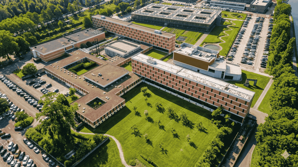 Les bâtiments modernes regroupent plusieurs établissements et disposent de divers services : un vaste parking, une bibliothèque, un restaurant, un accès gratuit au WiFi, etc.